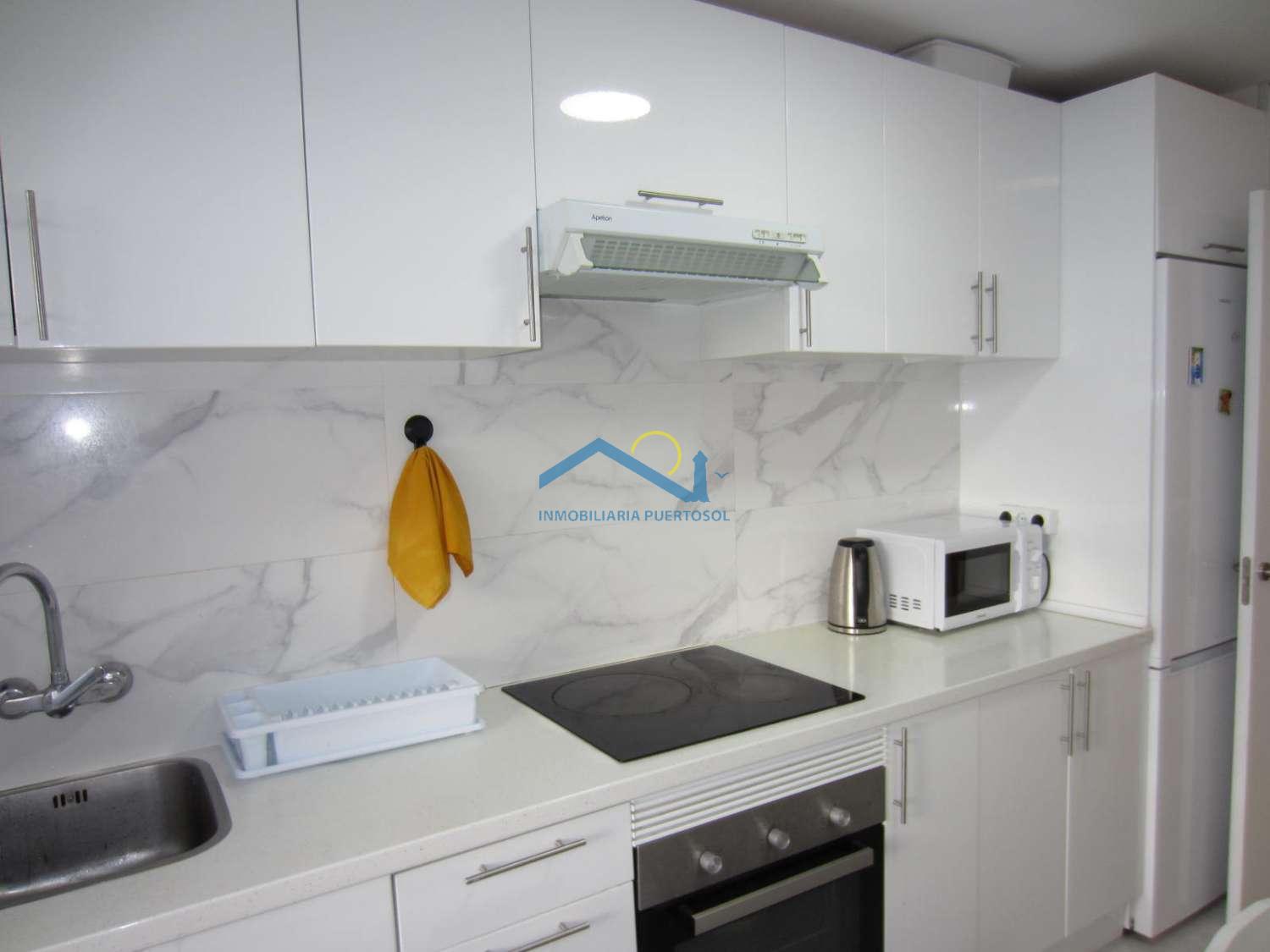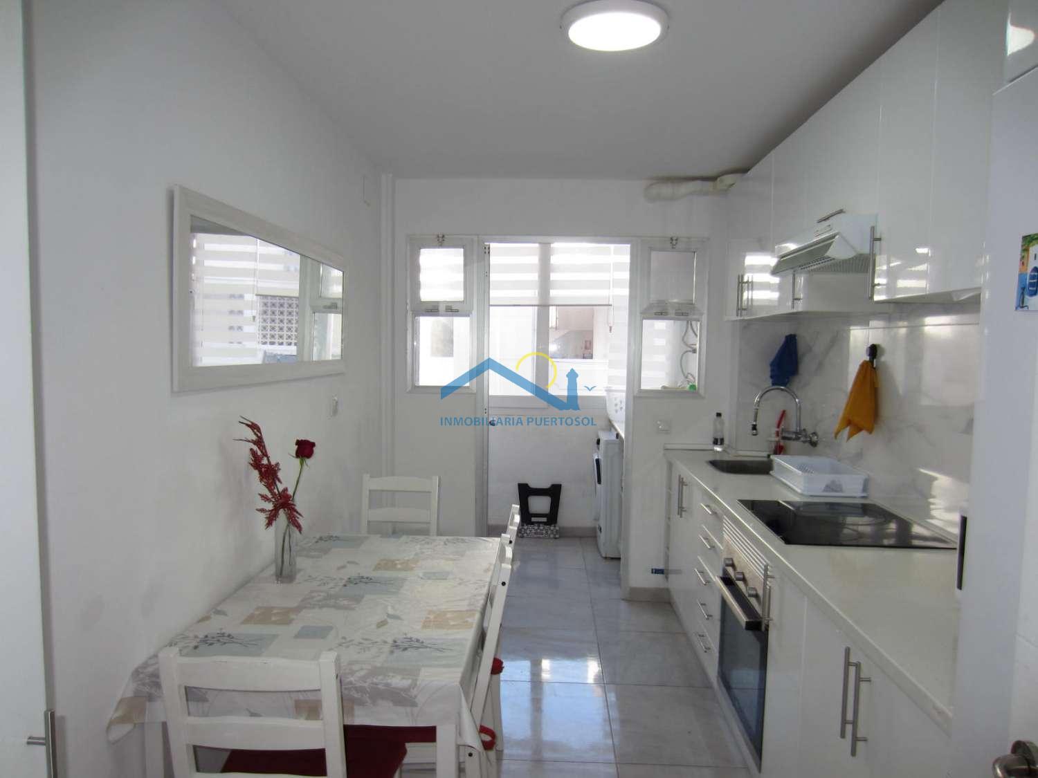 Spacious and bright apartment on the second line from the beach, located in the Fuengirola marina area. It features three bedrooms with built-in wardrobes, a bathroom and a separate toilet, a separate kitchen, a living-dining room, a utility room, and a balcony. Recently renovated and sold furnished, it includes split-system air conditioning in the living room and master bedroom. Surrounded by all amenities, including supermarkets, pharmacies, and restaurants, it is also very close to the train station and bus station. Don't hesitate to contact us to arrange a viewing.